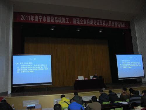 根據(jù)《關(guān)于舉辦2011年施工、監(jiān)理企業(yè)見(jiàn)證取樣人員崗前培訓(xùn)班的通知》,南寧市從2011年12月6日開(kāi)始,對(duì)南寧市各施工單位、監(jiān)理單位、房地產(chǎn)開(kāi)發(fā)單位以及市各有關(guān)建設(shè)單位在從事或?qū)氖陆ㄔO(shè)工程見(jiàn)證取樣工作的人員進(jìn)行建設(shè)系統(tǒng)施工、監(jiān)理企業(yè)檢測(cè)見(jiàn)證取樣人員崗前培訓(xùn)及考試。南寧品正參加了第4期培訓(xùn)及考試,參加培訓(xùn)總?cè)藬?shù)達(dá)到84人。