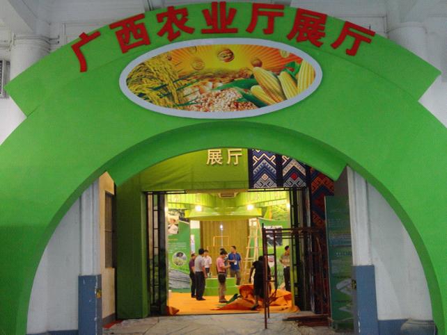 第九屆中國—東盟博覽會農(nóng)業(yè)展廣西農(nóng)業(yè)廳展廳特裝展位搭建過程中