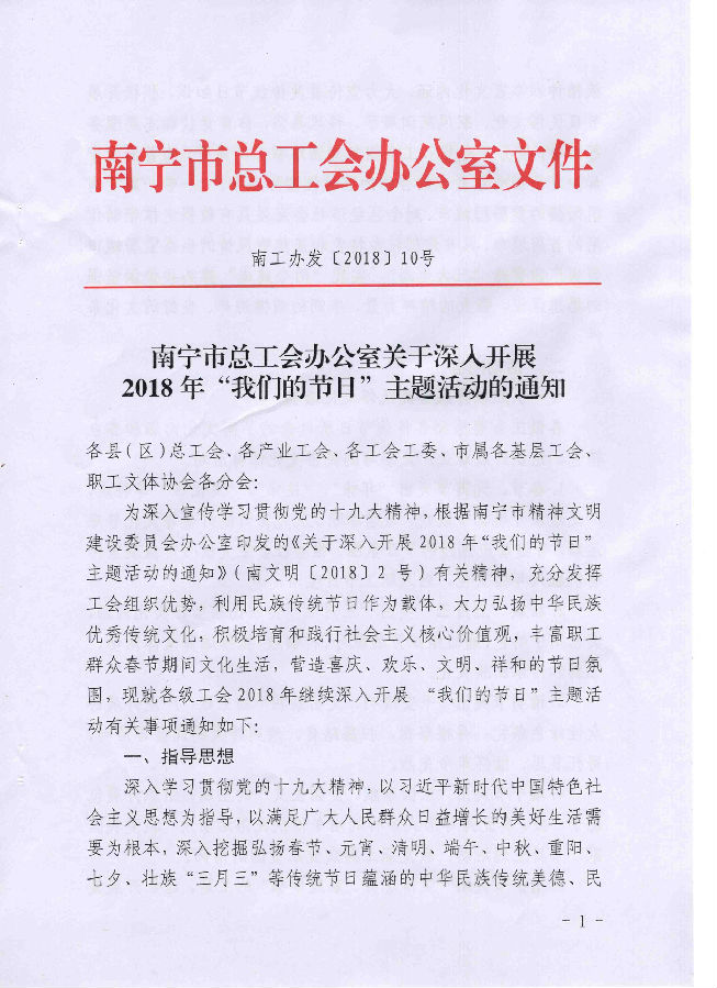 南寧市總工會辦公室關(guān)于深入開展2018年“我們的節(jié)目”主題活動的通知