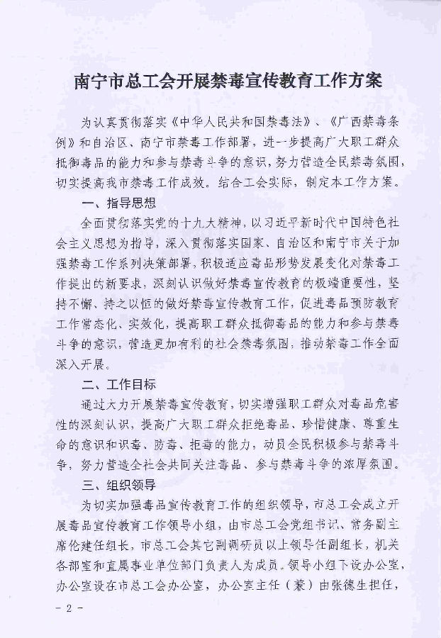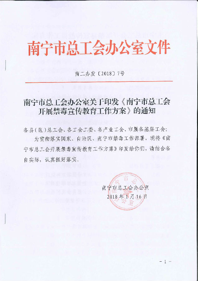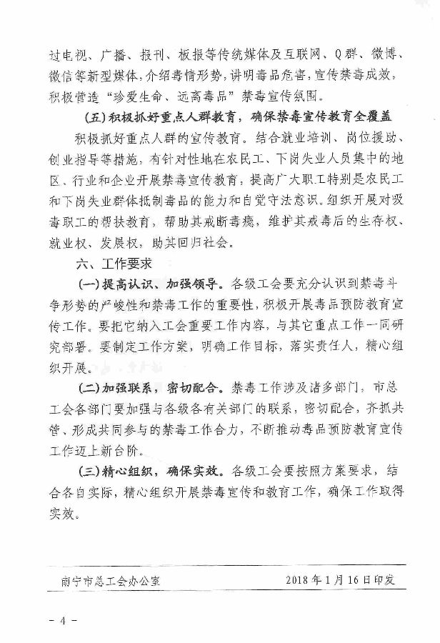 南寧市總工會(huì)辦公室關(guān)于印發(fā)《南寧市總工會(huì)開(kāi)展禁毒宣傳教育工作方案》的通知