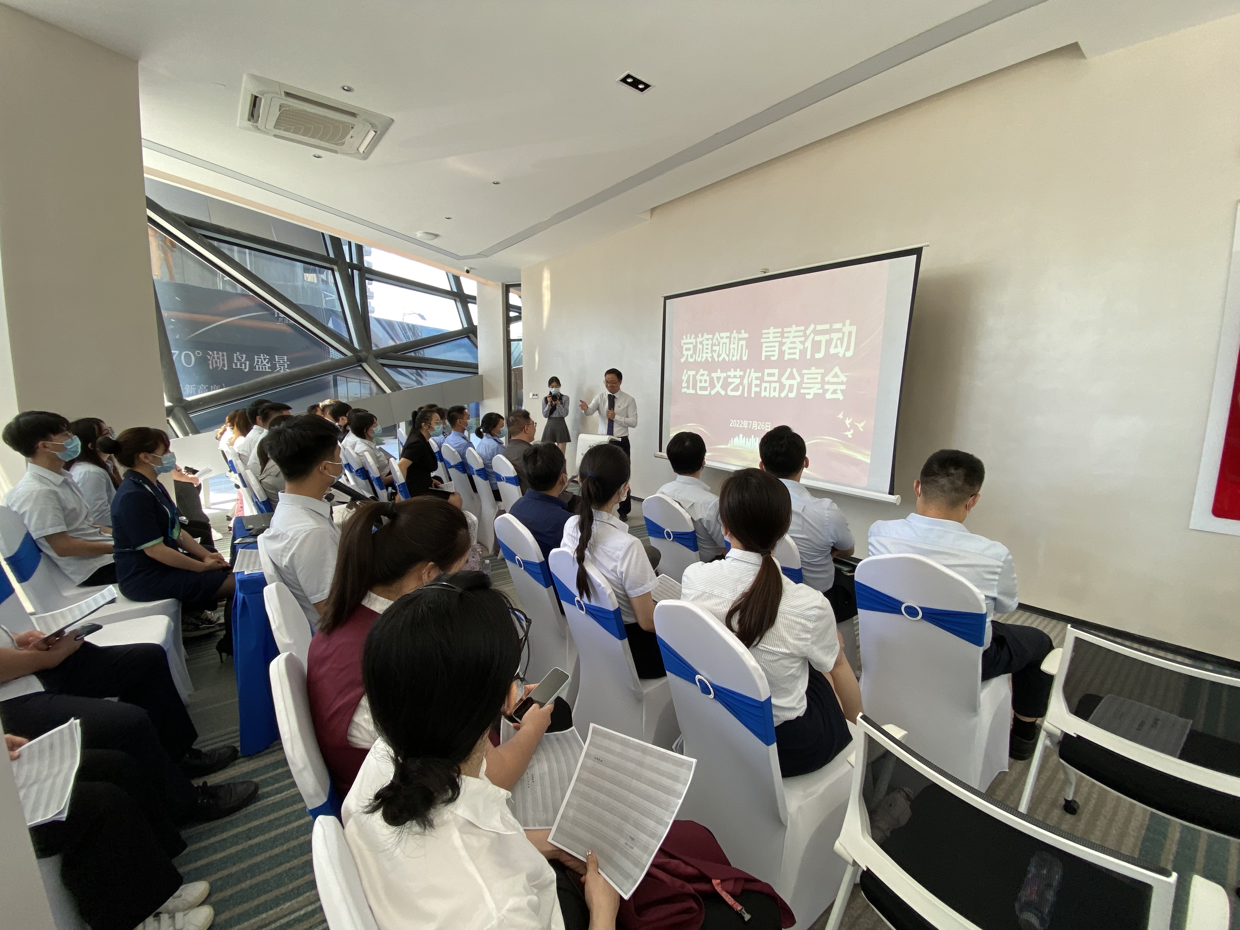 為慶祝中國共產(chǎn)黨成立101周年,迎接黨的二十大勝利召開,讓廣大黨員、團員青年從紅色文藝作品中品讀黨的歷史,重溫建團百年征程,感受紅色文化力量的浸潤與滋養(yǎng),增強紅色文藝作品的感染力與影響力,在新時代的建設(shè)中傳承紅色基因,進一步弘揚和繼承偉大建黨精神,引導(dǎo)團員青年學(xué)思并舉,中共南寧軌道交通集團有限責(zé)任公司委員會于2022年7月26日下午在軌道地產(chǎn)TOD展館開展了“品紅色經(jīng)典 傳紅色基因”紅色文藝作品分享會。公司黨支部黨員代表陳代遠和團員代表劉媛佳也出席參加了此次活動。