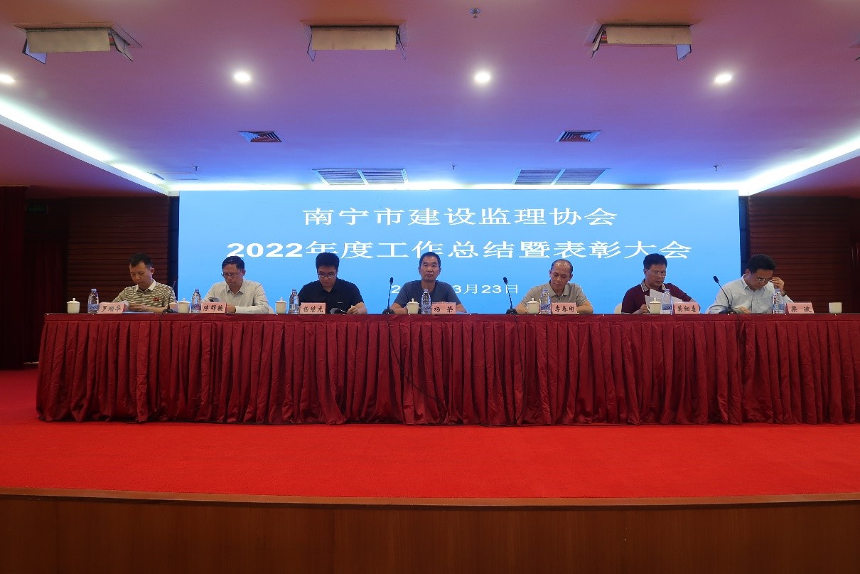 2023年3月23日,南寧市建設(shè)監(jiān)理協(xié)會(huì)在南寧市桃源飯店舉行2022年度南寧市建設(shè)監(jiān)理協(xié)會(huì)工作總結(jié)暨表彰大會(huì),南寧市住房和城鄉(xiāng)局房屋建筑質(zhì)量安全監(jiān)管科副科長(zhǎng)楊繼龍、南寧市民政局社會(huì)組織管理科科長(zhǎng)、四級(jí)調(diào)研員李春明、廣西建設(shè)監(jiān)理協(xié)會(huì)會(huì)長(zhǎng)陳群毓等領(lǐng)導(dǎo)到會(huì)指導(dǎo)并講話。南寧市建設(shè)監(jiān)理協(xié)會(huì)會(huì)員單位參加會(huì)議。