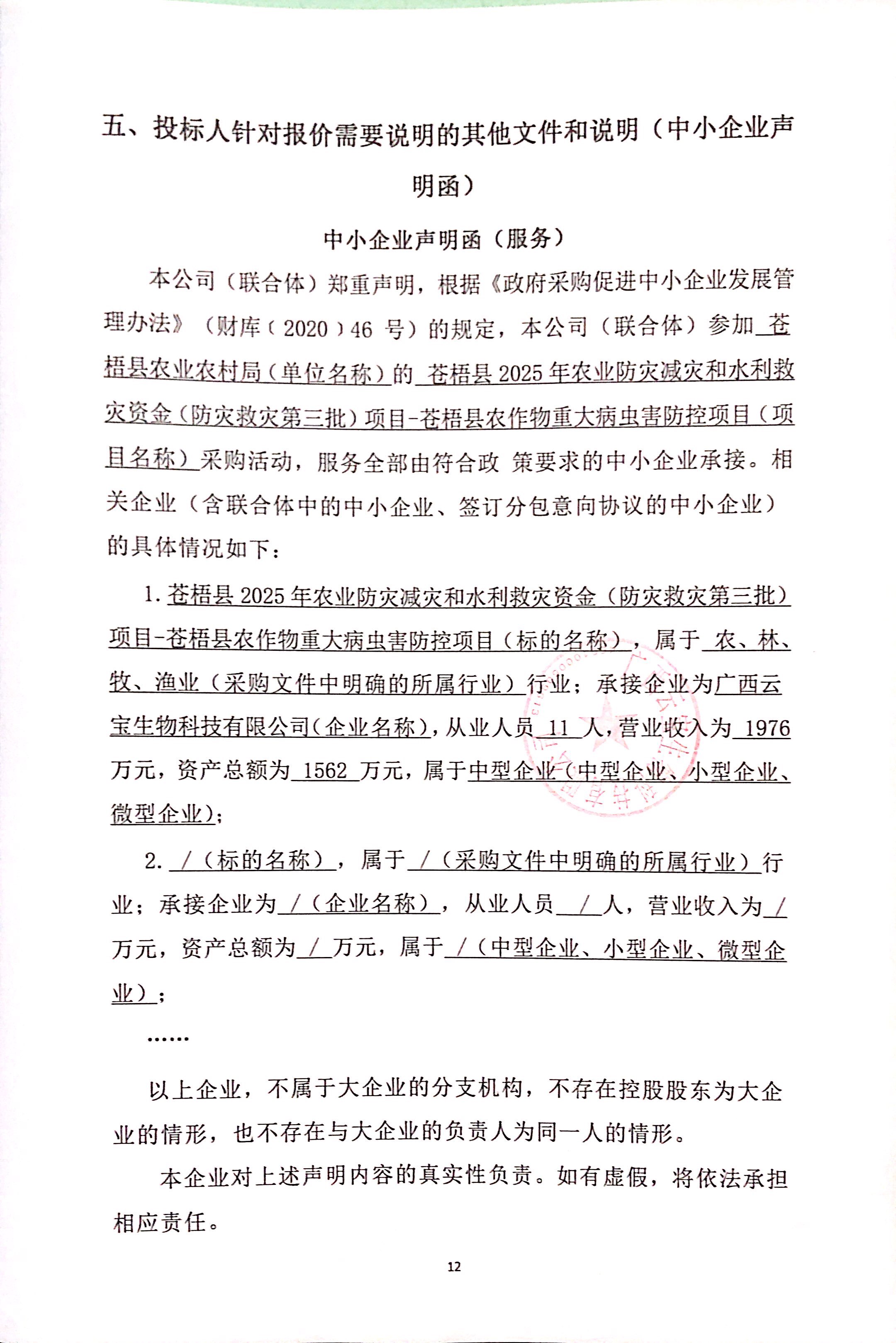 蒼梧縣2025年農(nóng)業(yè)防災(zāi)減災(zāi)和水利救災(zāi)資金(防災(zāi)救災(zāi)第三批)項目-蒼梧縣農(nóng)作物重大病蟲害防控項目(NNPZCW2025-J3001) 成交結(jié)果公告