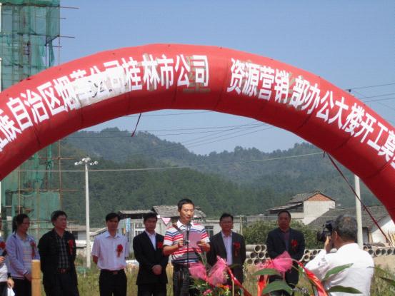 2011年10月18日,南寧品正承監(jiān)的桂林煙草資源縣營銷部經(jīng)營業(yè)務用房工程舉行隆重的開工儀式,資源縣領導及相關單位的負責人參加儀式。桂林分公司謝建明副經(jīng)理作為監(jiān)理方代表發(fā)言,并承諾努力為該工程建設提供優(yōu)質(zhì)的服務。開工儀式取得圓滿成功。