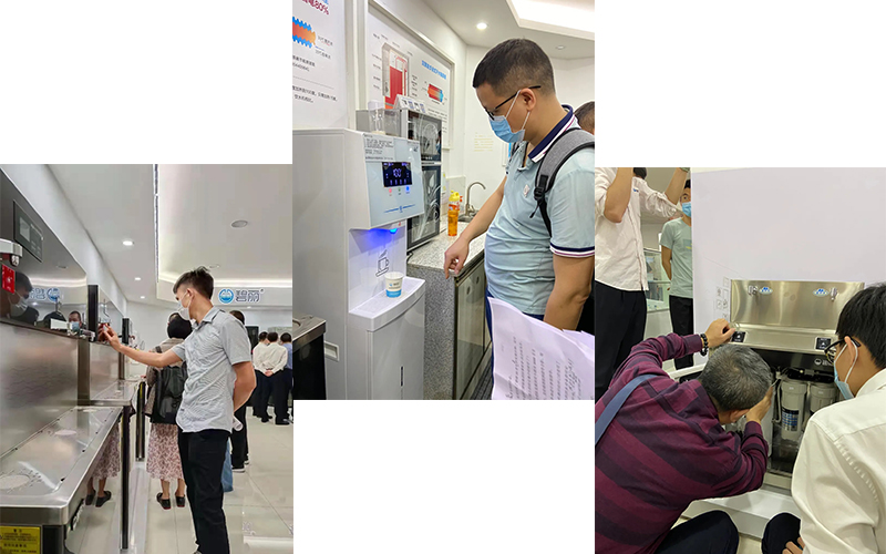 在碧麗營銷團(tuán)隊的簇?fù)硐?,慧聰買家團(tuán)先后參觀了碧麗文化展廳、生產(chǎn)車間、產(chǎn)品展廳、科研室,看碧麗是如何打造高品質(zhì)商用凈水產(chǎn)品。