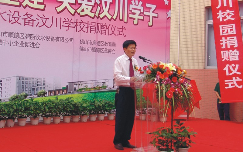 2009年4月,在汶川地震一周年之際,為了盡快幫助汶川受震災(zāi)區(qū)重建家園,讓汶川的孩子們早日回到自己心愛的校園,讓孩子們喝上健康衛(wèi)生的水,碧麗公司向汶川縣正在重建中的6所學(xué)校贈送節(jié)能王數(shù)碼高背板飲水機(jī),為災(zāi)區(qū)的重建出一份力量,“大愛無疆,情系汶川”,碧麗關(guān)愛汶川災(zāi)區(qū)的孩子,為災(zāi)區(qū)孩子送上健康水是碧麗人的心愿。